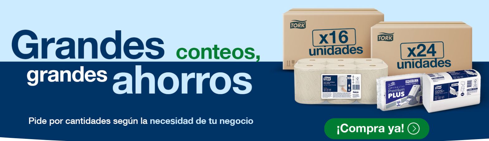 Por supuesto. Nuestro catálogo incluye toda la línea institucional: Papel higiénico, Servilletas TORK, Toallas de mano TORK y los sistemas de dispensadores oficiales de la marca para su empresa.
